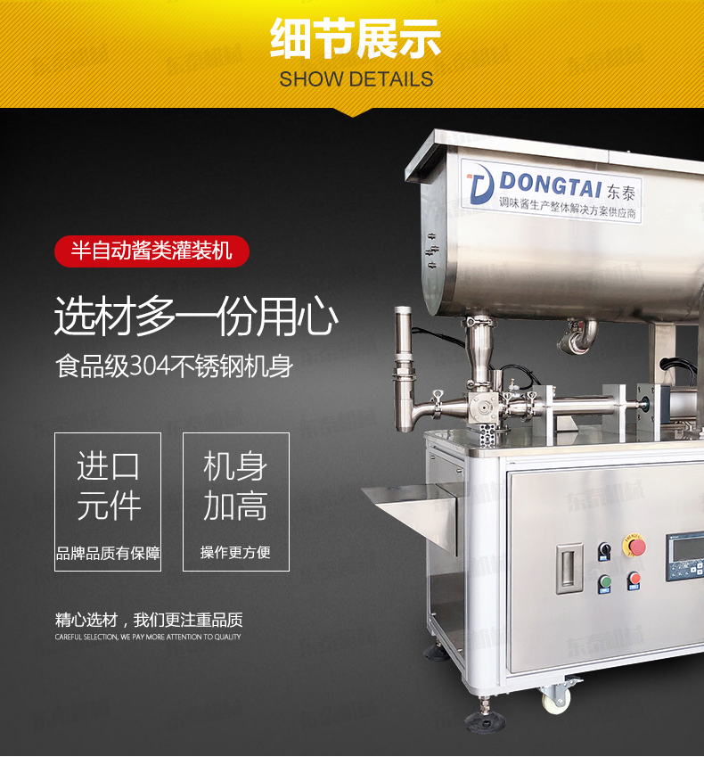 1.防滴漏灌裝頭:316L不銹鋼精制而成,專為醬料灌裝設(shè)計,通過型好,內(nèi)外精拋,真正的食品級