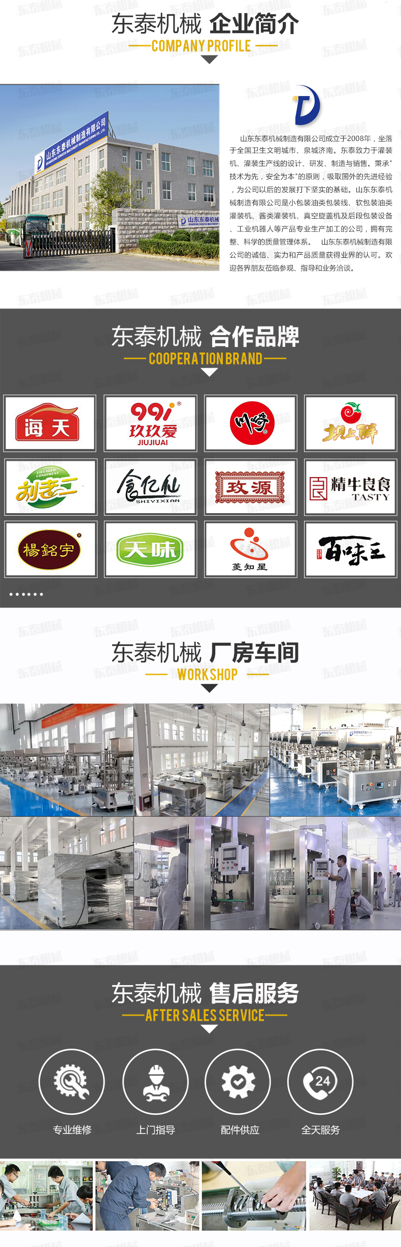 沈陽東泰機械隸屬于山東東泰機械,主營粉劑包裝機、醬類醬料包裝機、食用油灌裝機、食品包裝機、包裝流水線、灌裝生產(chǎn)線等產(chǎn)品,并且為東北地區(qū)客戶提供售后維修服務(wù)...