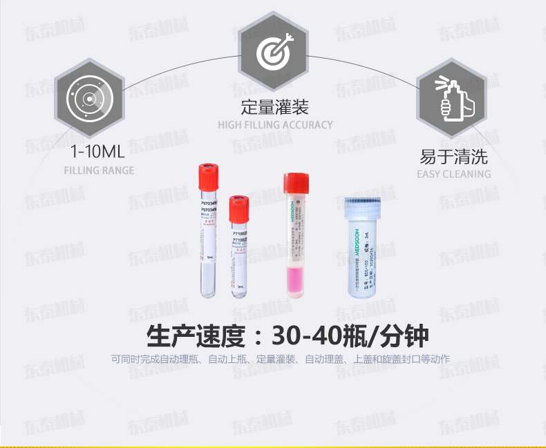 本機(jī)是在引進(jìn)和吸收國外技術(shù)的基礎(chǔ)上,由我公司自主研發(fā)的一款I(lǐng)VD診斷試劑灌裝旋蓋一體機(jī),能同時(shí)完成自動(dòng)理瓶、自動(dòng)上瓶、定量灌裝、自動(dòng)理蓋、上蓋和旋蓋封口等動(dòng)作。本機(jī)采用日本高精度封閉式凸輪分度工位器,精度高,運(yùn)行可靠,使用壽命長(zhǎng)。該分度器結(jié)構(gòu)簡(jiǎn)單,長(zhǎng)期使用無需維修。該型號(hào)設(shè)備主要用于ⅣD體外診斷試劑制藥、生物制藥行業(yè)及科研領(lǐng)域裝。機(jī)器設(shè)計(jì)緊湊合理、外形簡(jiǎn)潔美觀,灌裝量調(diào)節(jié)方便。