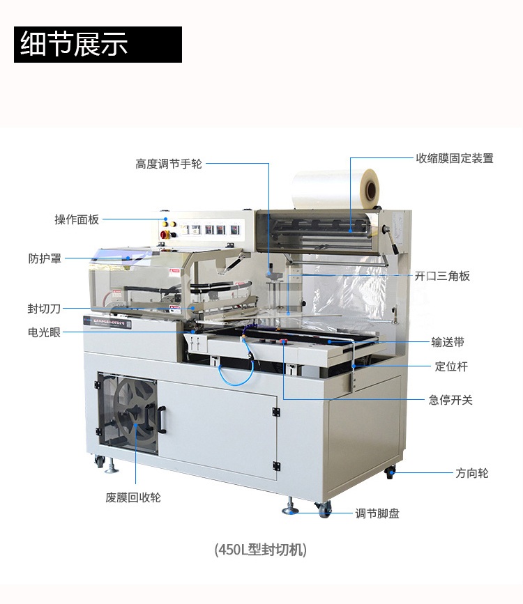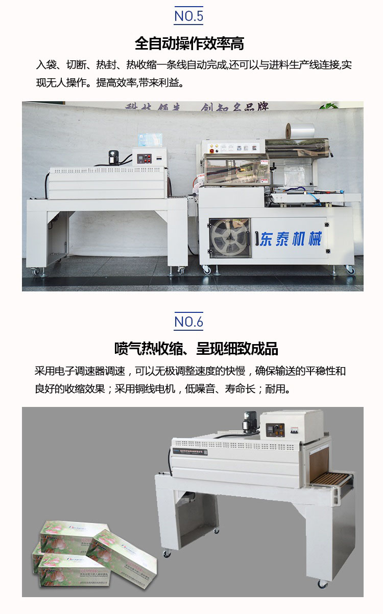 全自動(dòng)套膜收縮機(jī)是由全自動(dòng)450L封切機(jī)和熱收縮機(jī)組成,入袋、切斷、熱封、熱收縮一條線自動(dòng)完成,還可以與進(jìn)料生產(chǎn)線連接,實(shí)現(xiàn)無(wú)人操作。提高效率,帶來(lái)利益。全自動(dòng)化封切收割,適用于各種物品的套膜及收縮,生產(chǎn)效率高,品質(zhì)有保證。