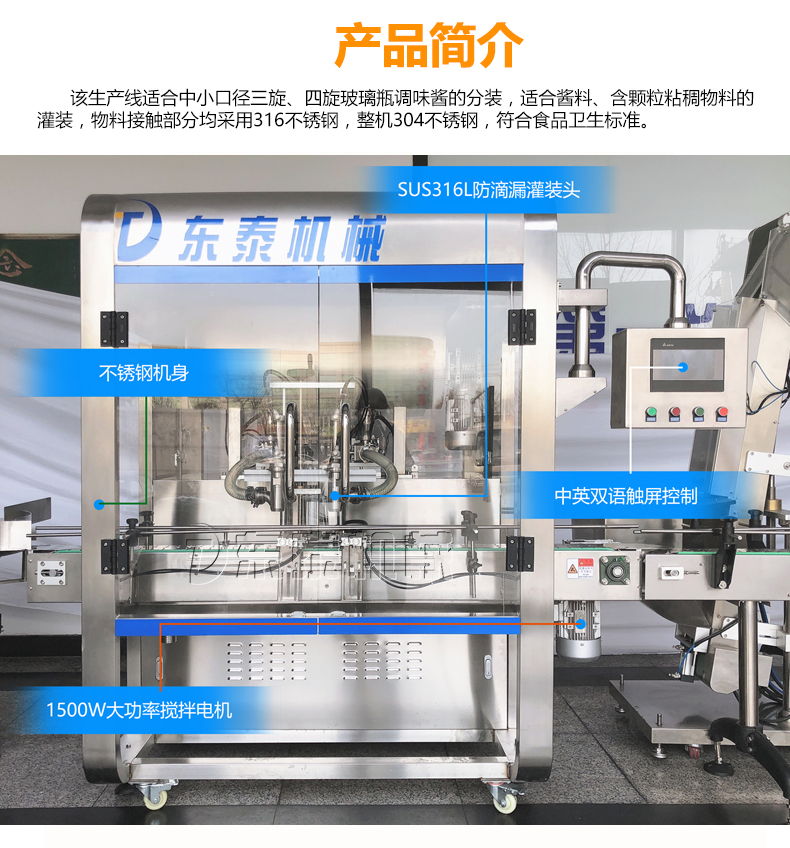現(xiàn)在很多行業(yè)領(lǐng)域的發(fā)展方法都有了一定的更改,為了能使我們的使用者可以相對(duì)于企業(yè)擁有更加深入的了解芝麻醬灌裝機(jī)機(jī)械,不但是擁有完善的售后,還設(shè)有24小時(shí)的熱線電話,也完全打破了傳統(tǒng)的未來(lái)發(fā)展方法,展開(kāi)了多渠道未來(lái)發(fā)展。芝麻醬灌裝封口機(jī)生產(chǎn)設(shè)備觸摸式操作彩屏,可顯示生產(chǎn)狀態(tài)、操作程序和灌裝方式、畫面目標(biāo)、操作簡(jiǎn)單、維護(hù)方便,期間我們也不斷地提高瓶裝芝麻醬自動(dòng)灌裝機(jī)械的性能選用直瓶進(jìn)瓶、出瓶,使充填功能得以擴(kuò)展,各種形狀的容器得到有效充填從而滿足社會(huì)發(fā)展,如果你也需要一款芝麻醬灌裝封口機(jī)生產(chǎn)設(shè)備,那就到我們東泰來(lái)看看吧!